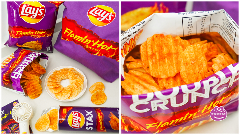 The three flavours are Lay’s Flamin’ Hot Chips, Lay’s Flamin’ Hot Double Crunch Chips, and Lay’s Flamin’ Hot STAX.